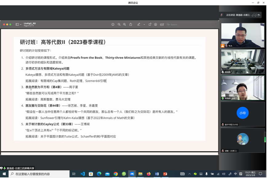 张玮和李鹏分别介绍了两校课程建设的进展与成果,分享了数字化教学背景下,在线教育教学改革的思路和想法。表示,此次《高等代数》教学研讨的合作,将推动东西部高校教学资源共享,共同走出一条合作共赢之路。