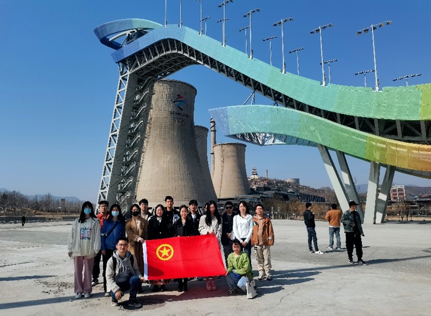 初春的首钢园,正是春风和煦,气候宜人。在讲解员的带领下,同学们先后参观了首钢滑雪大跳台、三高炉南广场、秀池水下展厅、秀池湖畔和三高炉区域,深入了解了首钢百年的发展历史,感受遗址建筑的变迁与工业文化的魅力。