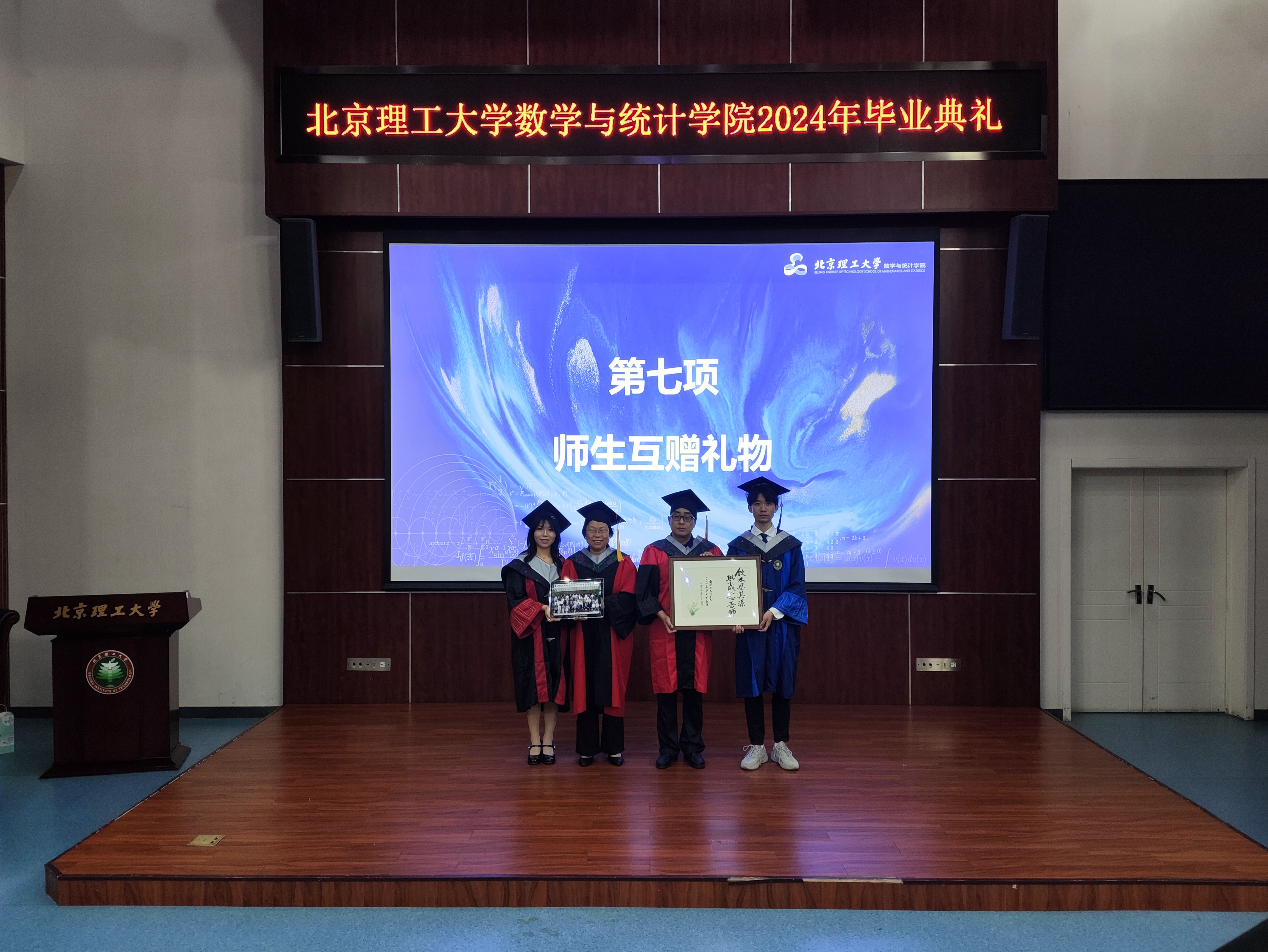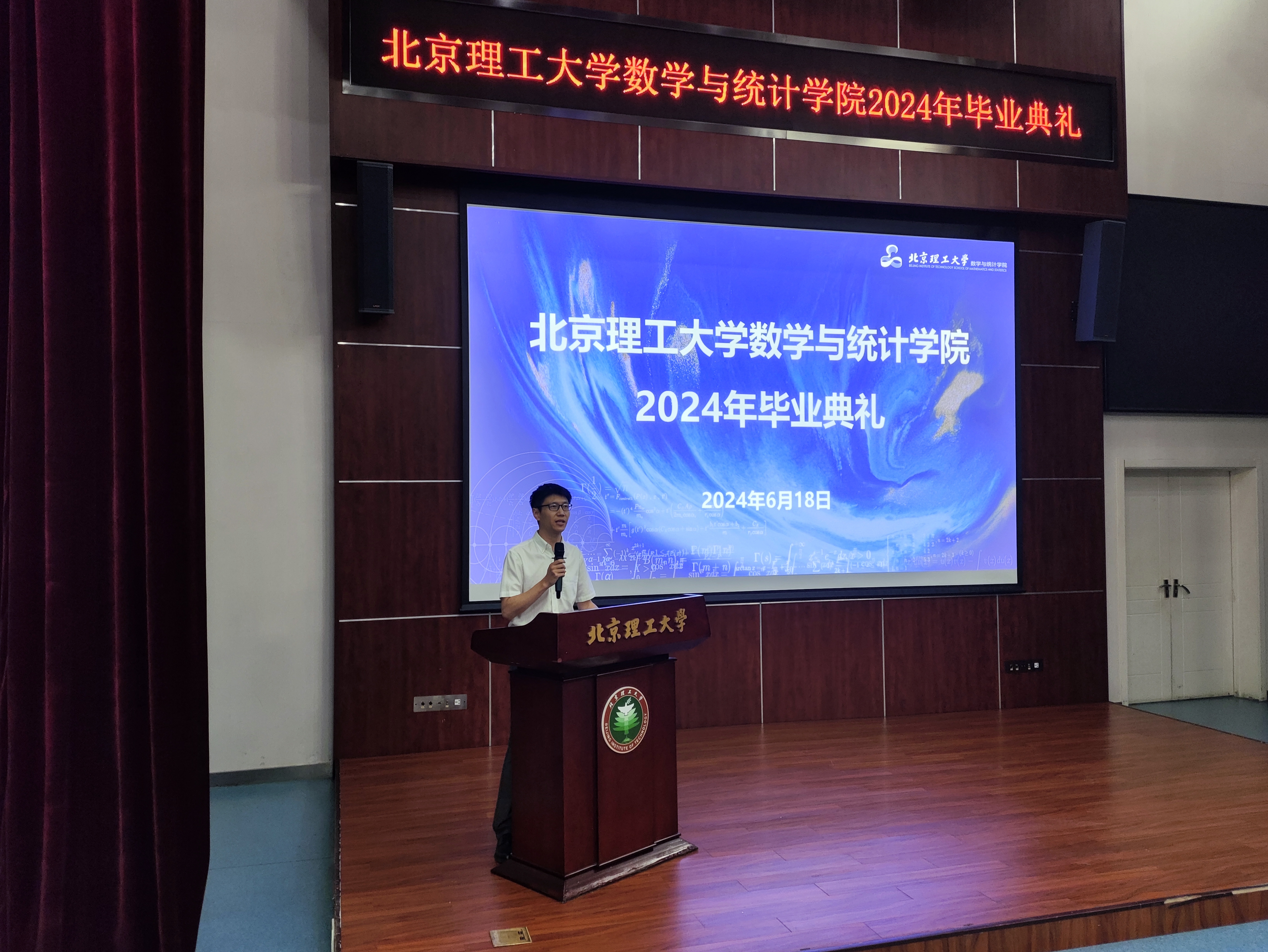张希承代表学院全体教师向2024届毕业生表示热烈祝贺。他祝愿有志于学术研究的同学们攀登学术高峰,在科研前沿做出贡献,将论文书写在祖国大地上;投身高科技开发和道基层一线的同学们在直面问题、破解难题中打开工作新局面,将个人奋斗融入国家发展大局,让青春之花盛开在祖国和人民最需要的地方,以实际行动诠释“北理数学人”的精神与风采。