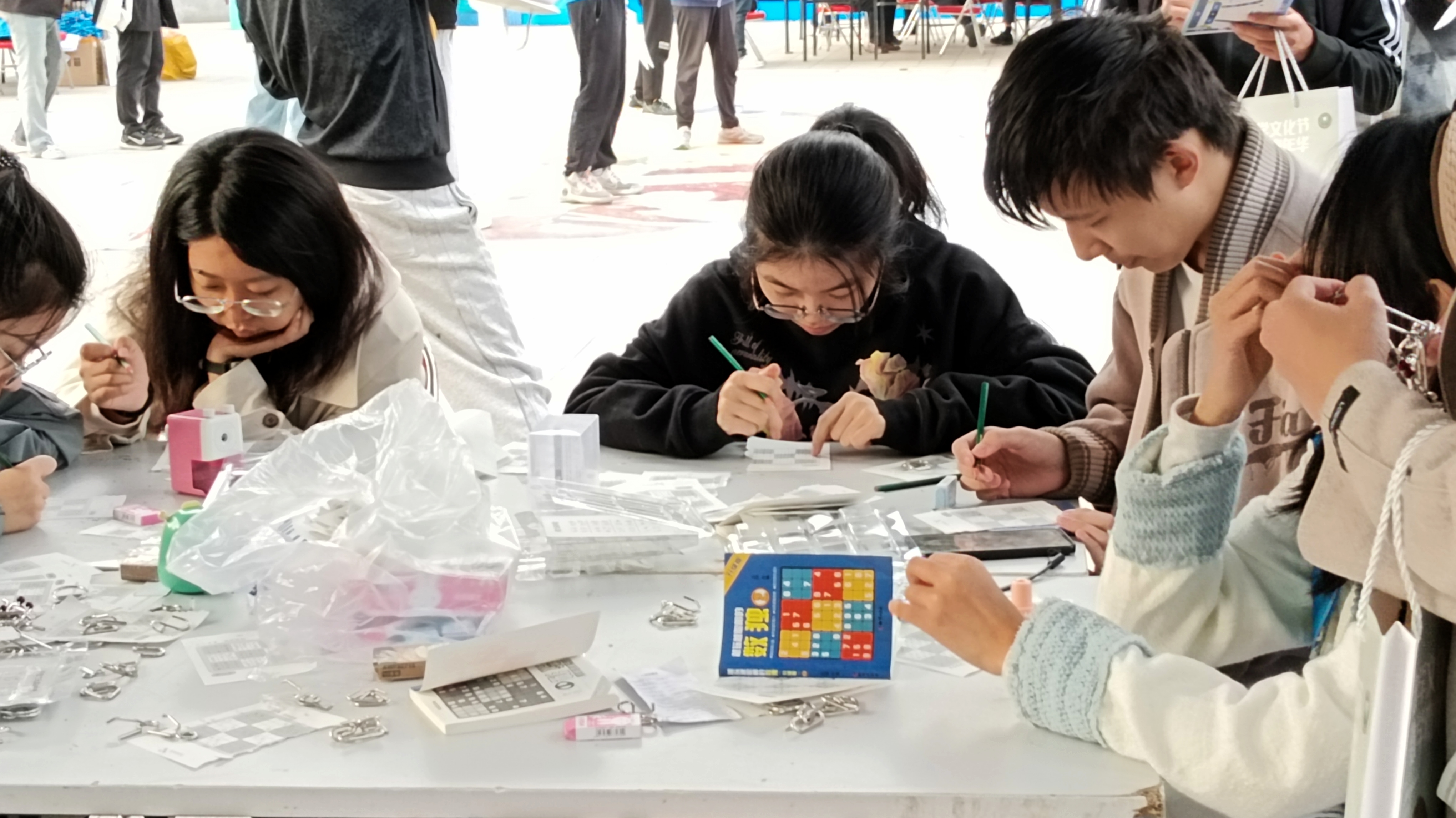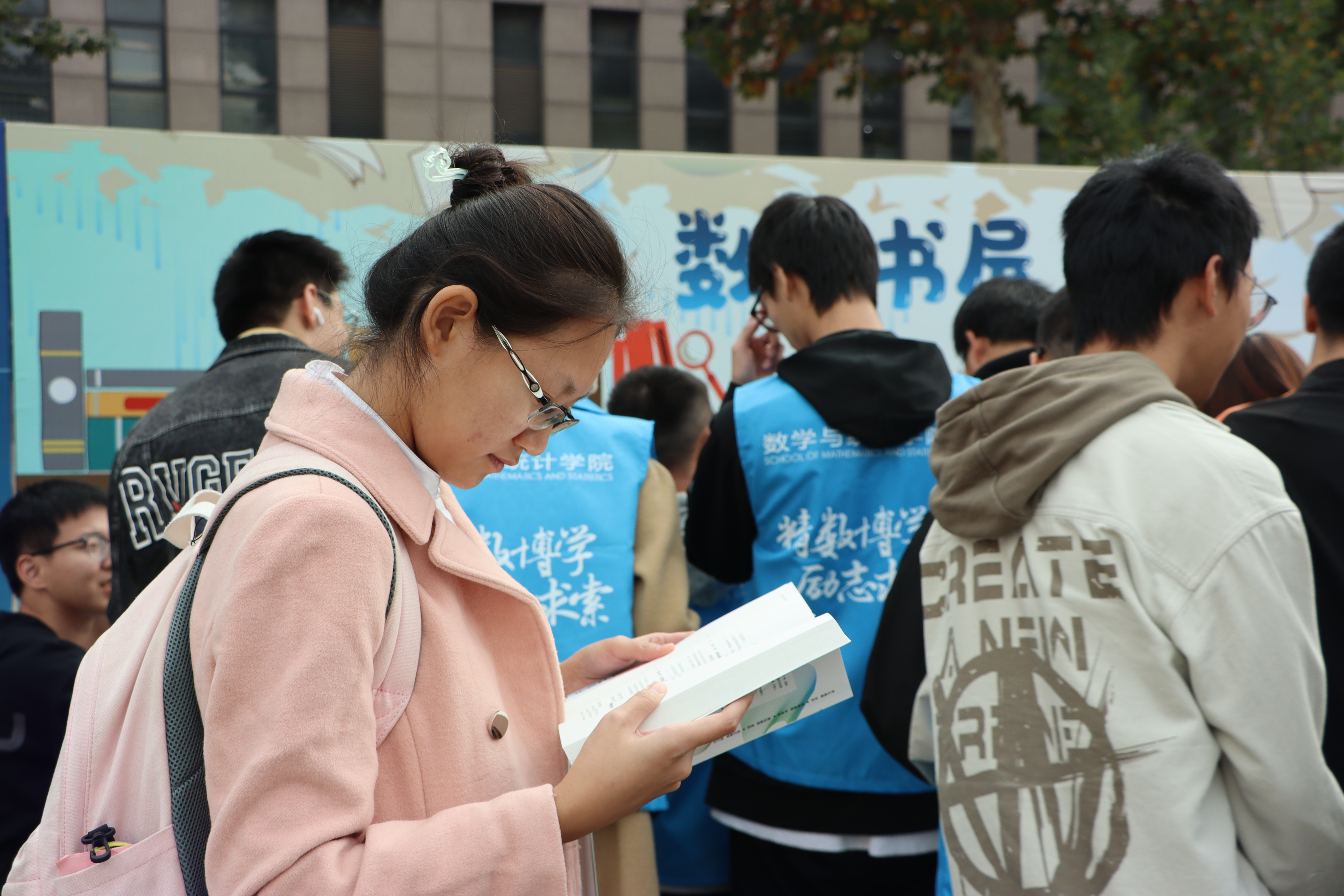 “数学嘉年华”活动中,设置数学发展史区、学院介绍区、数学话剧区、数学书屋、数学游戏区等五个板块,打造了沉浸式数学互动空间,吸引了众多学生参观体验。“从祖冲之到牛顿,从勾股定理到微积分,没想到数学历史竟然如此有趣。”“非常荣幸在话剧中饰演华罗庚,感受他对数学的突出贡献和对祖国热忱的爱。”参与活动的学生说道。