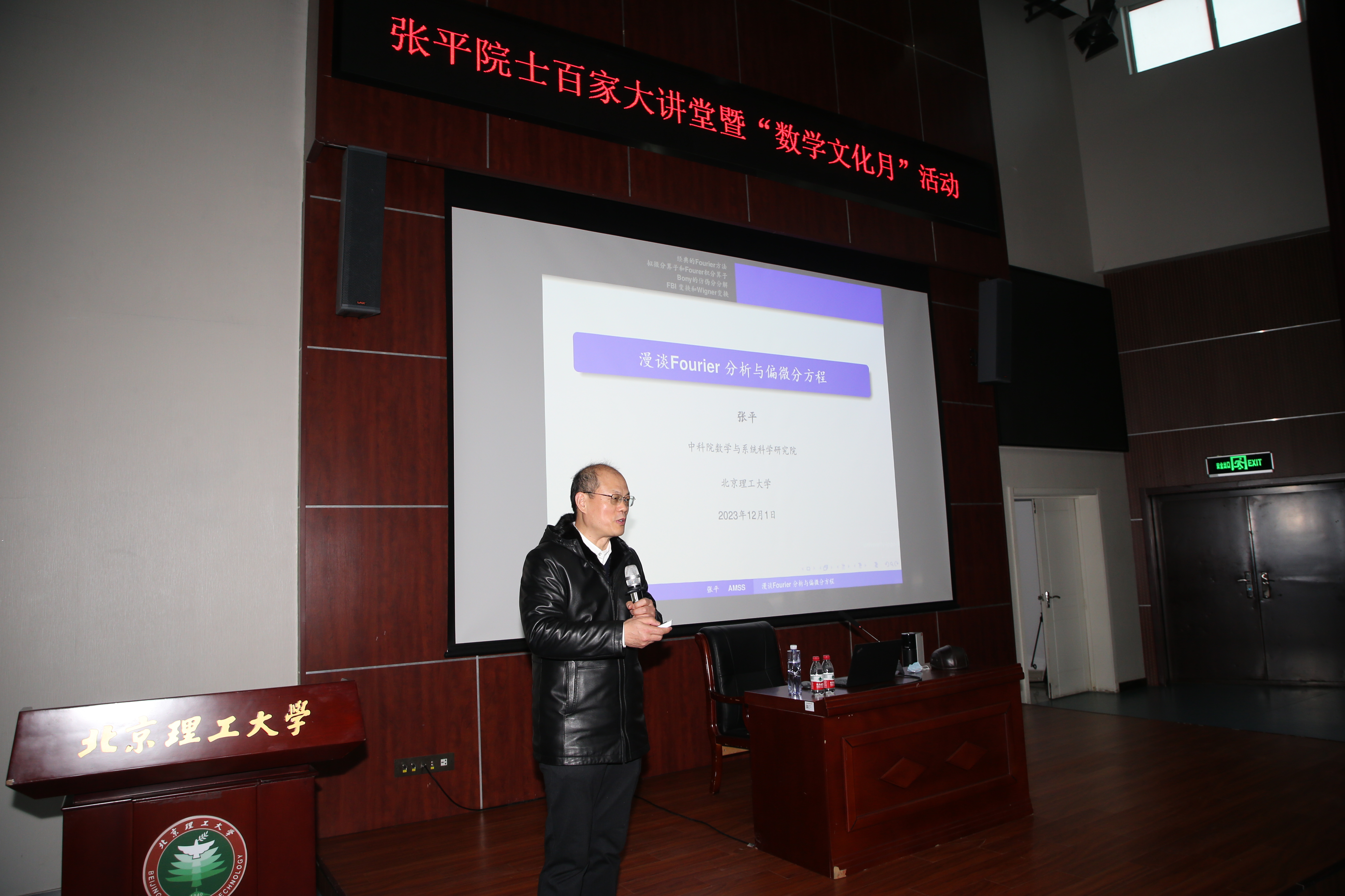 “院士大讲堂”中,田刚院士作题为《欧拉公式与计数几何》的报告,从欧拉公式出发,层层递进地阐释了欧拉数与计数几何的关系。张平院士作题为《漫谈Fourier分析与偏微分方程》的报告,介绍了Fourier分析与偏微分方程的学术前沿。“两位院士内容详实、深入浅出的报告,开拓了我的学术视野,激发了数学学习的兴趣和热情。”参与讲座的本科生说道。